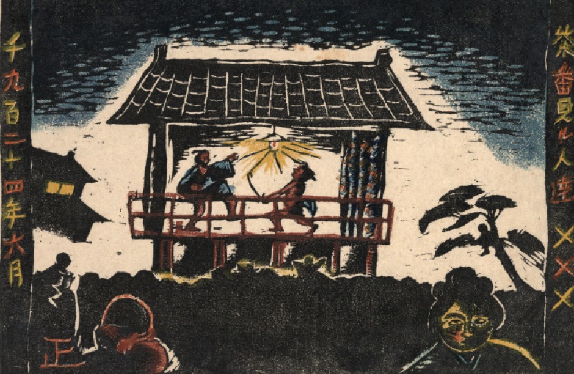 Note: The artist signed the print "正" (Masa?)